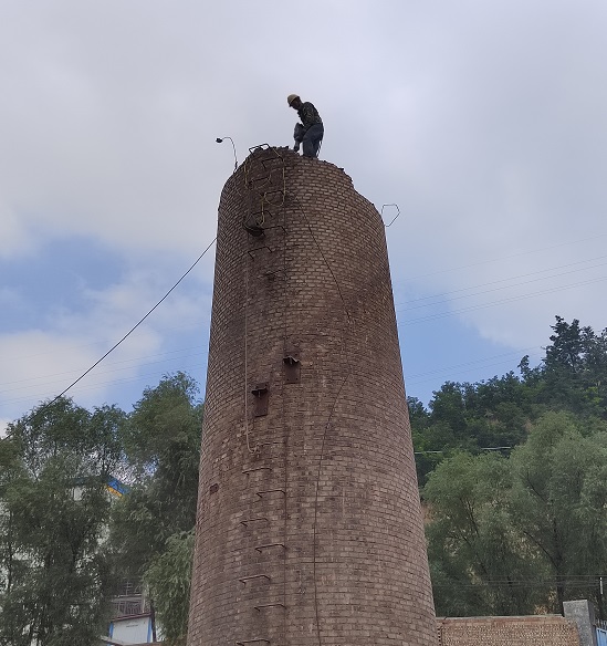 5.拆除煙囪同時腳手架會隨著施工面的減少而減少,但腳手架必須始終高出施工面1.5m~2m防止?fàn)t渣飛出腳手架保護層。